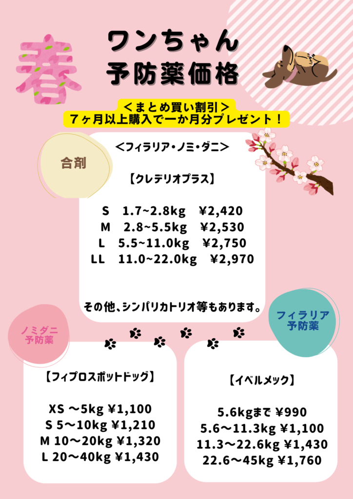 暖かくなり、フィラリア予防の季節が近づいてきました!