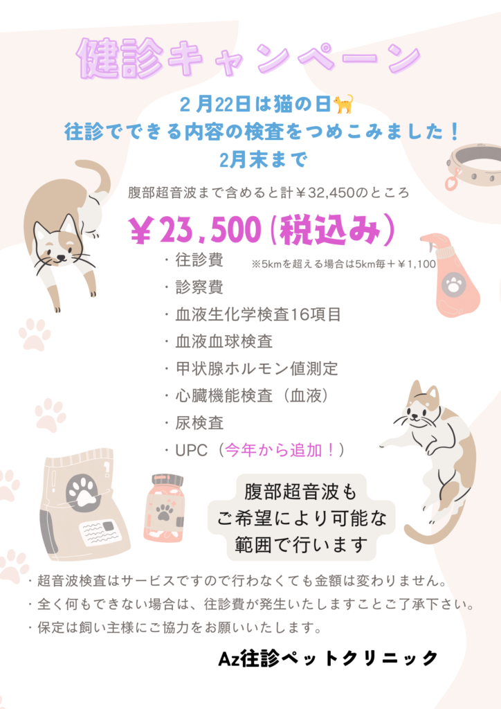 自分が飼っていた高齢猫の健康状態を調べるときに検査していた内容となります。