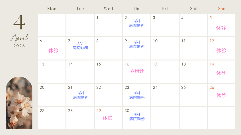 空白が診療受付日となります。